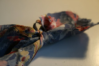 Schritt drei: Am Ende knotet ihr wieder mit einem Stückchen Stoff fest, jedoch so, dass der Anfang mit im